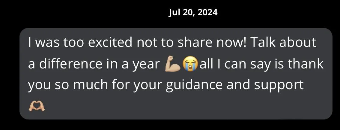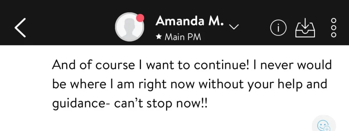 Every week, we check in. I review your progress, celebrate your wins, troubleshoot the stuck points, and adjust your plan accordingly. You’re never left guessing.